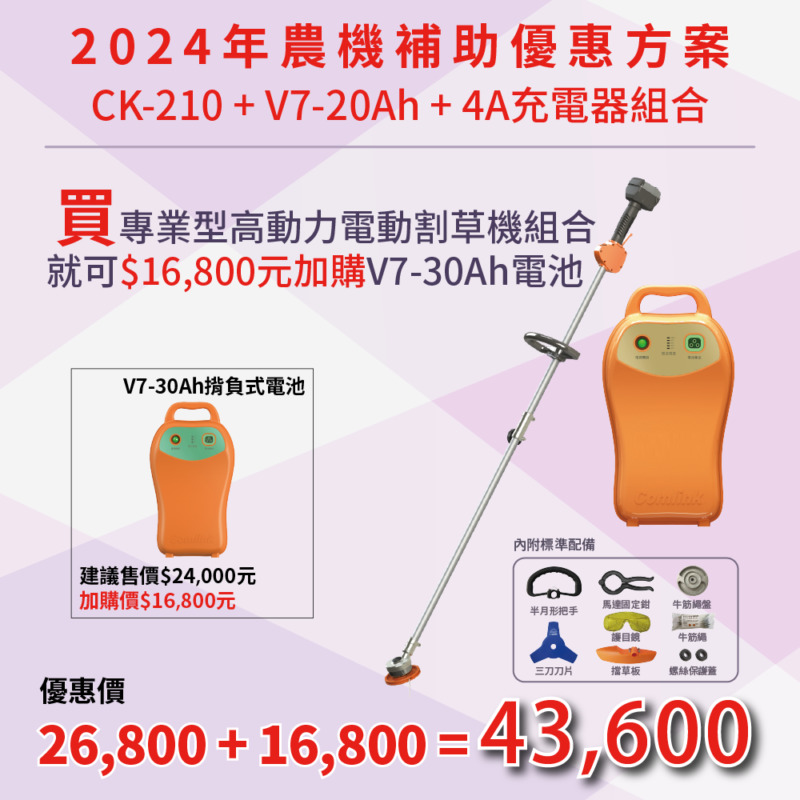 12.12周年慶優惠活動V7-20Ah+CK210 高動力電動割草機 加購 V7-30高動力電池 700SET21020030
