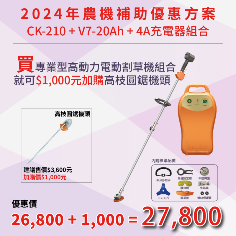 2.12周年慶優惠活動V7-20Ah+CK210 電動割草機 加購 高枝圓鋸機下段 700SET20240320B