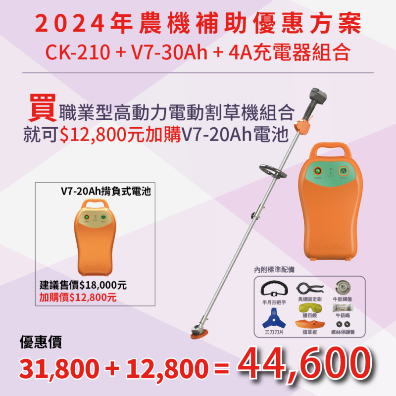 23.12周年慶優惠活動V7-30Ah+CK210 高動力電動割草機 加購 V7-20Ah電池 700SET21030020