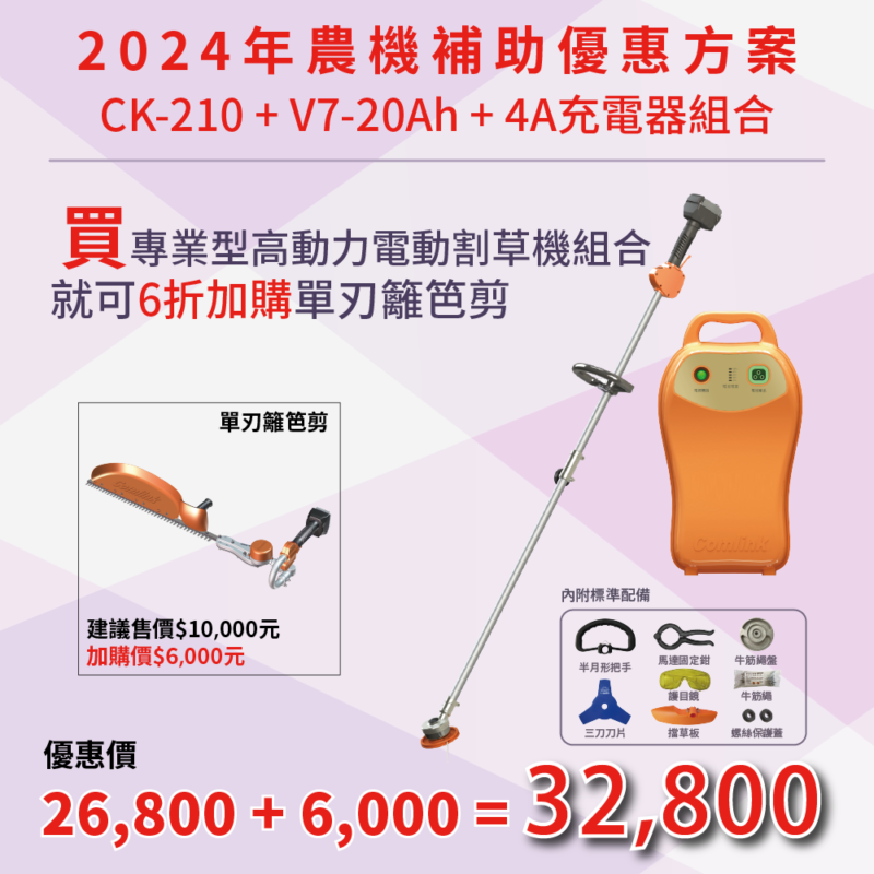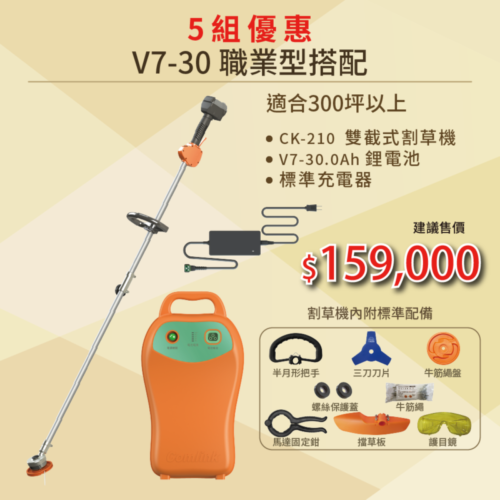 20.12周年慶優惠活動V7-30Ah+CK210 高動力電動割草機 加購 手持鏈鋸機-CK-400 700SET21030400