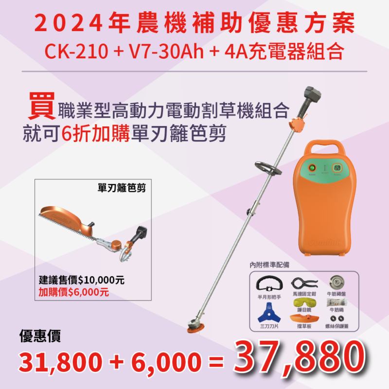 19.12周年慶優惠活動V7-30Ah+CK210 高動力電動割草機 加購 單刃籬笆剪-CK-300 700SET20230230E