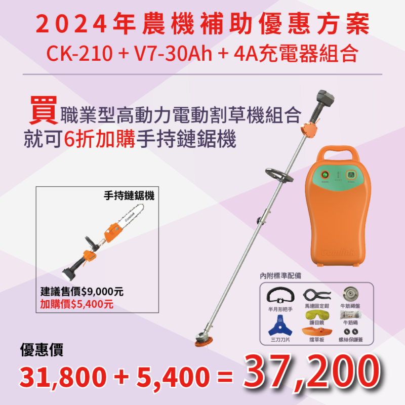 20.12周年慶優惠活動V7-30Ah+CK210 高動力電動割草機 加購 手持鏈鋸機-CK-400 700SET21030400