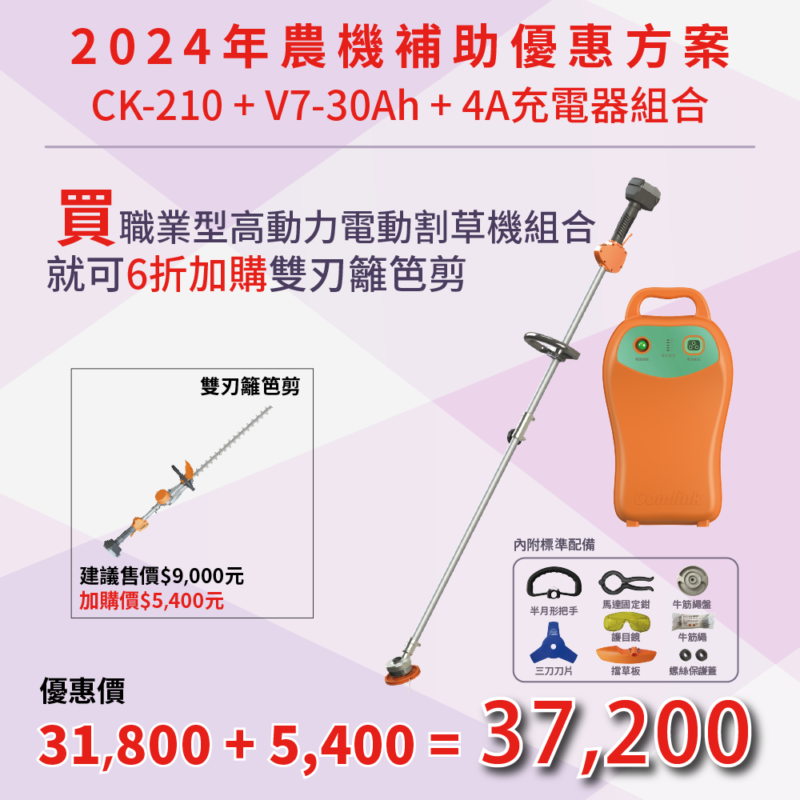 18.12周年慶優惠活動V7-30Ah+CK210 高動力電動割草機 加購 雙刃籬笆剪-CK-320 700SET21030320